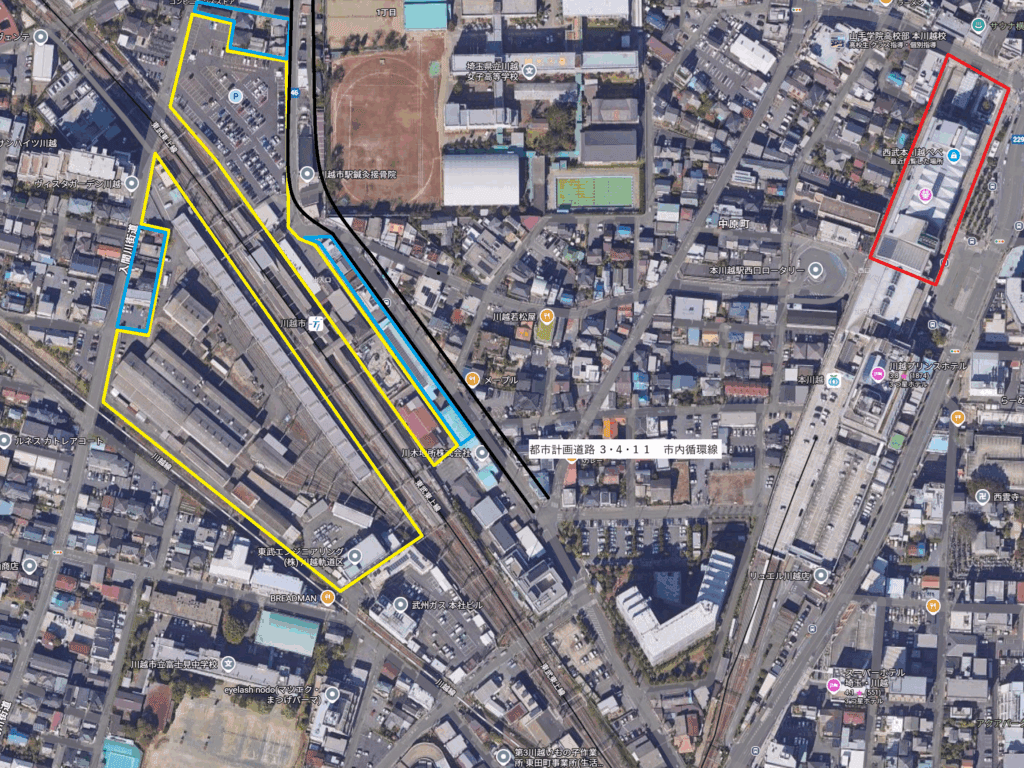 東武鉄道が所有し自由にできるということで、いわゆる「虎の子の土地」となっている川越市駅とその周辺ですが、具体的にどの辺りが対象なのかと言われると、境目が曖昧な方も多いのではないでしょうか?