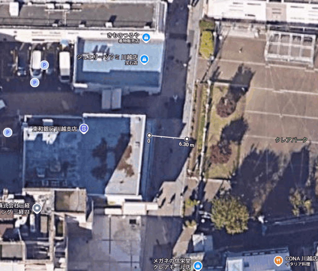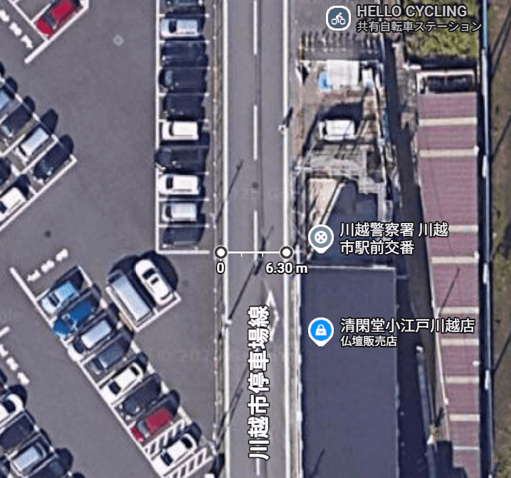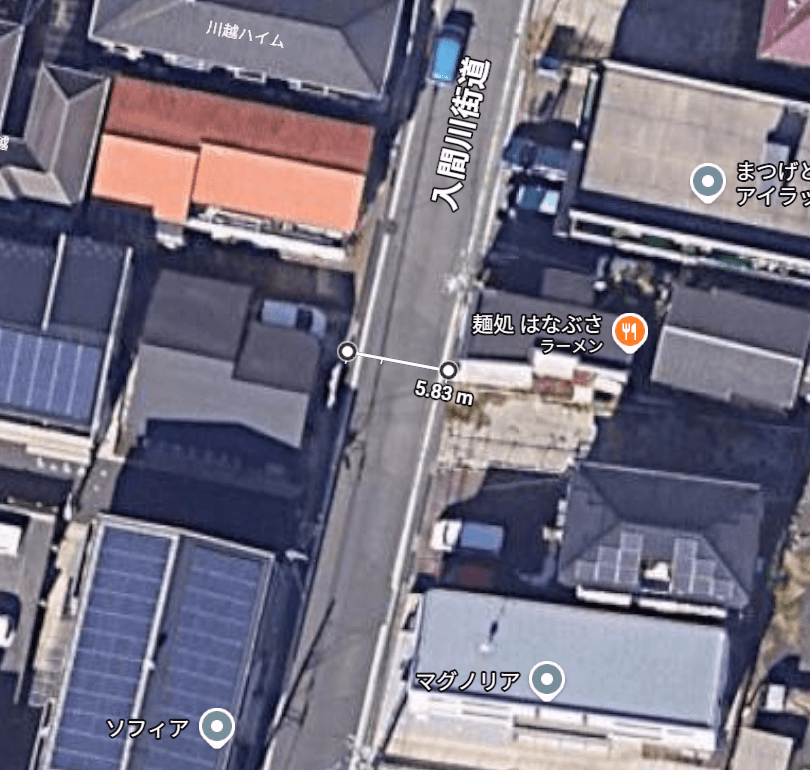 東和銀行川越支店前、クレアパーク付近のクレアモールの幅員が約6メートルですから、それと同じと考えていただければ、狭すぎるという考えに同意して頂けるはずです。